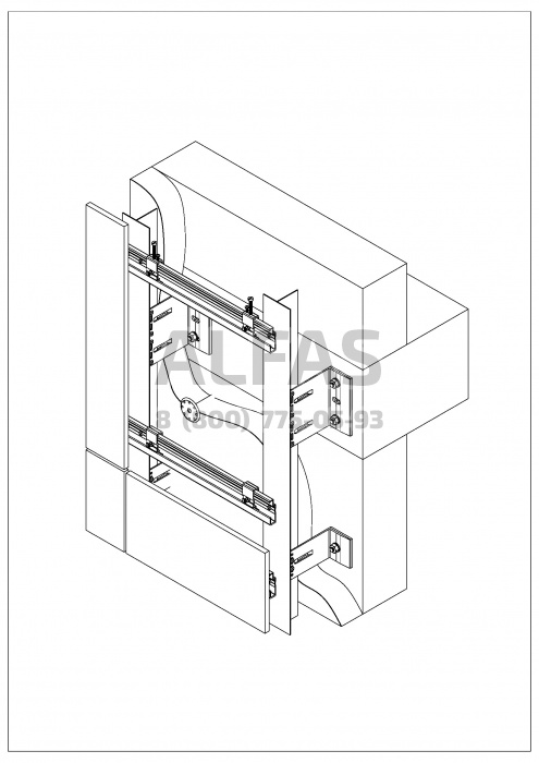 Вариант Light. Экономичный вариант для зданий с большими ветровыми нагрузками. Кронштейны крепятся в несущие стены зданий.