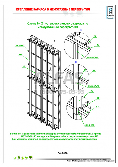 Возможна система крепления как по всей поверхности стены, так и исключительно в межэтажные перекрытия.