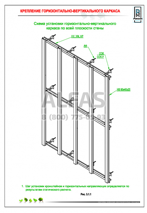 Возможна система крепления как по всей поверхности стены, так и исключительно в межэтажные перекрытия.
